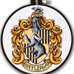 Counted cross stitch kit  ‘Hufflepuff Crest’ images a crest that belongs to one of four Hogwarts houses.