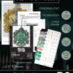 Counted cross stitch kit ‘Slythering Crest’ images a crest that belongs to one of four Hogwarts houses.