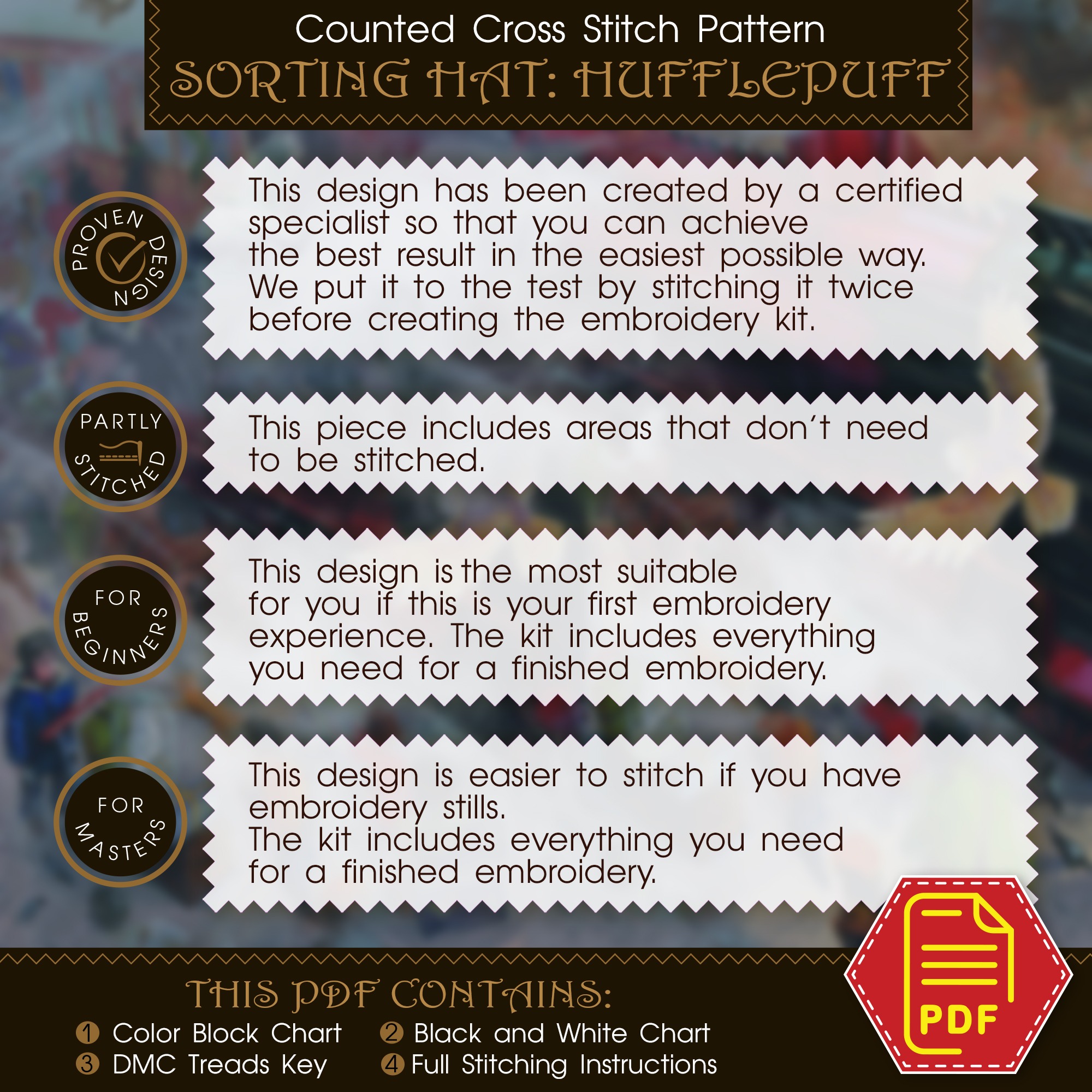 Step into the cozy and magical world of ⚡ Harry Potter with this charming counted cross stitch pattern. The design features the legendary 🎩 Sorting Hat – the enchanted hat that decides the fate of every young wizard 🏰.