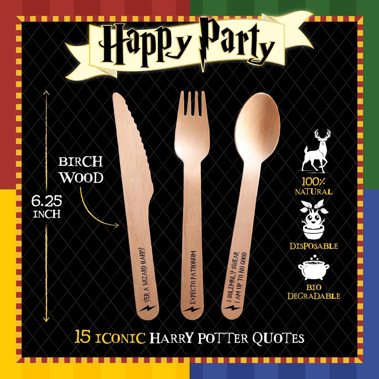 👓 Celebrate sustainably and enchant your guests with cutlery that’s as conversation-worthy as your Pumpkin Pasties and Butterbeer. The Harry Potter Disposable Wooden Cutlery Set is the magical finishing touch your wizard-themed event deserves.