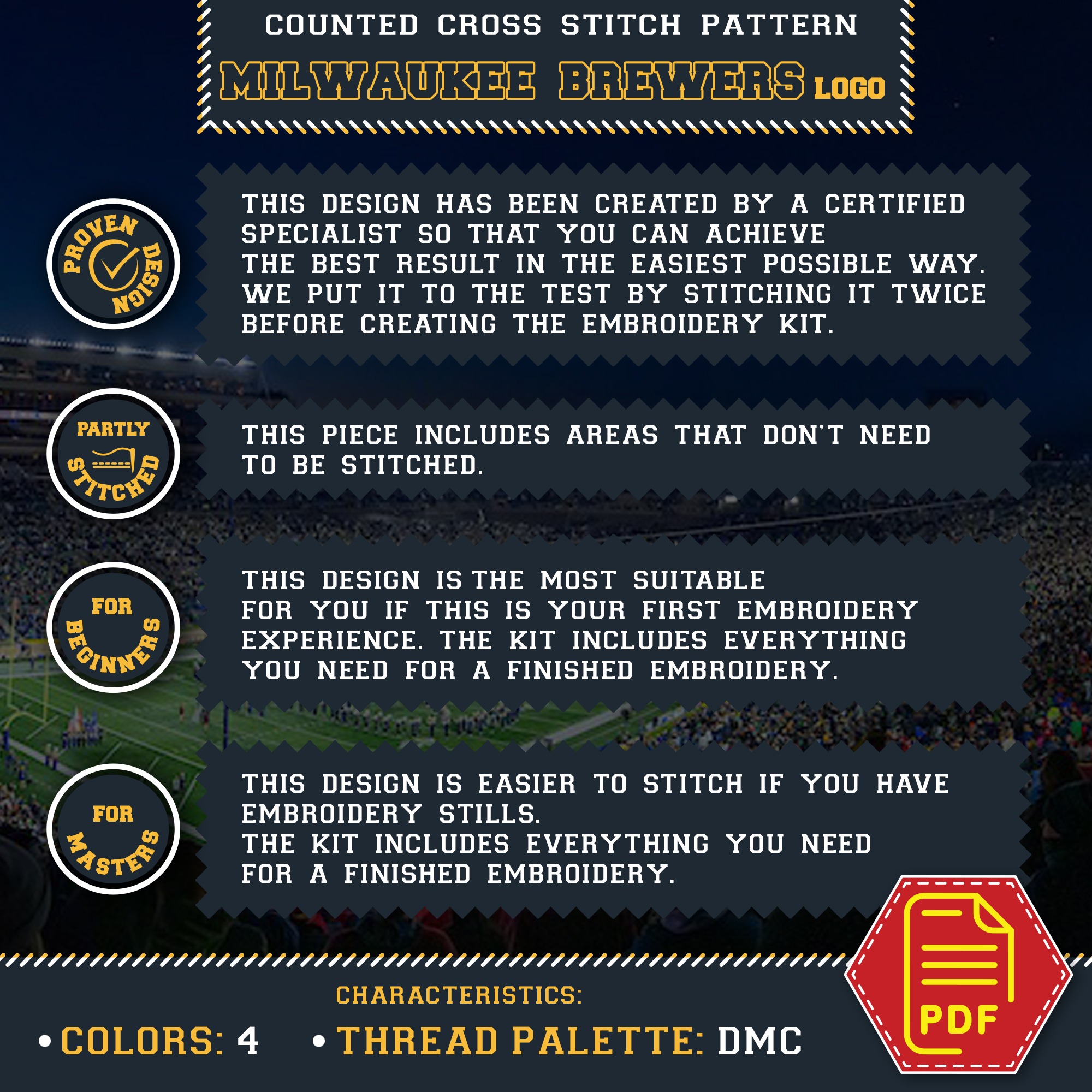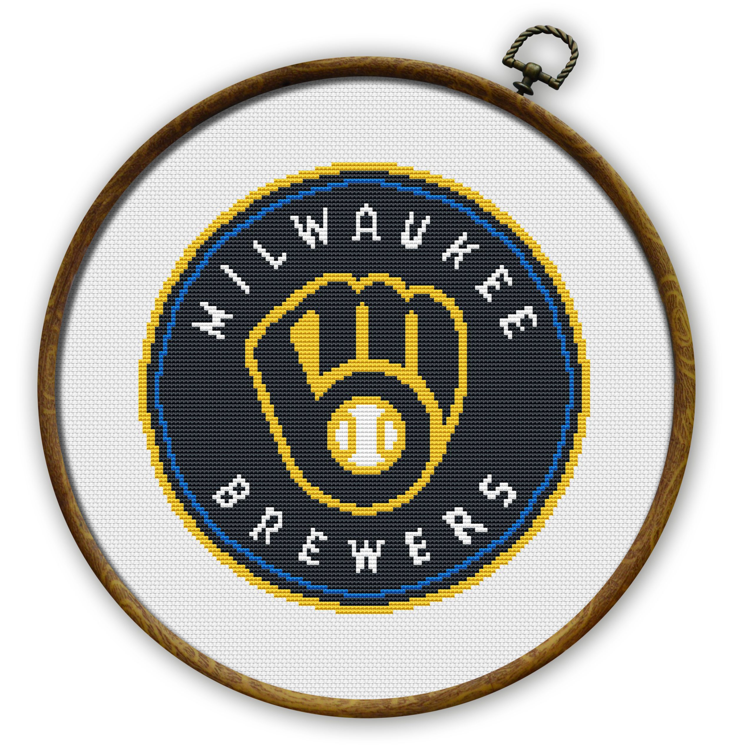 Milwaukee Brewers insignia cross stitch pattern, available for instant download as a 5-page PDF file.