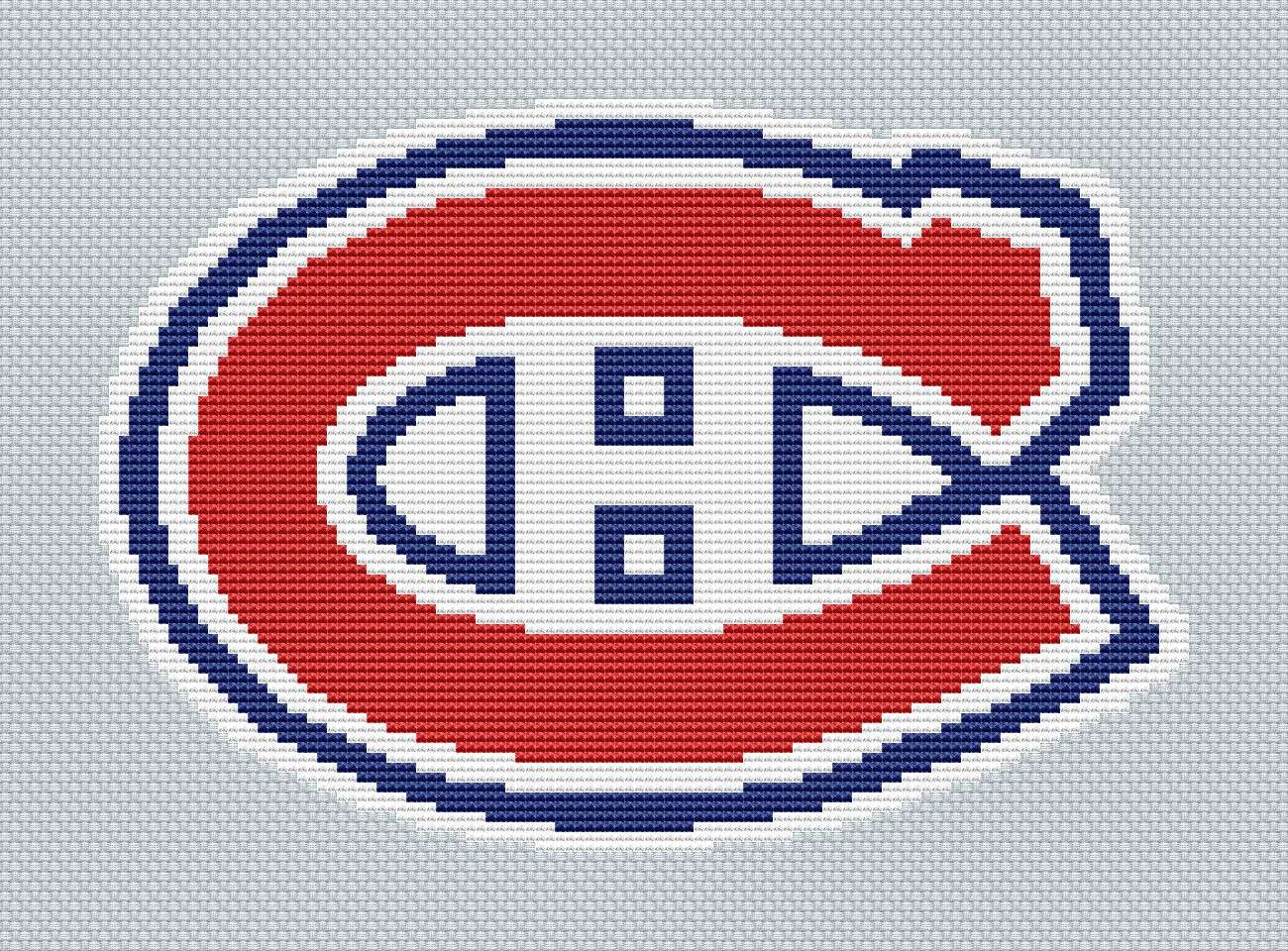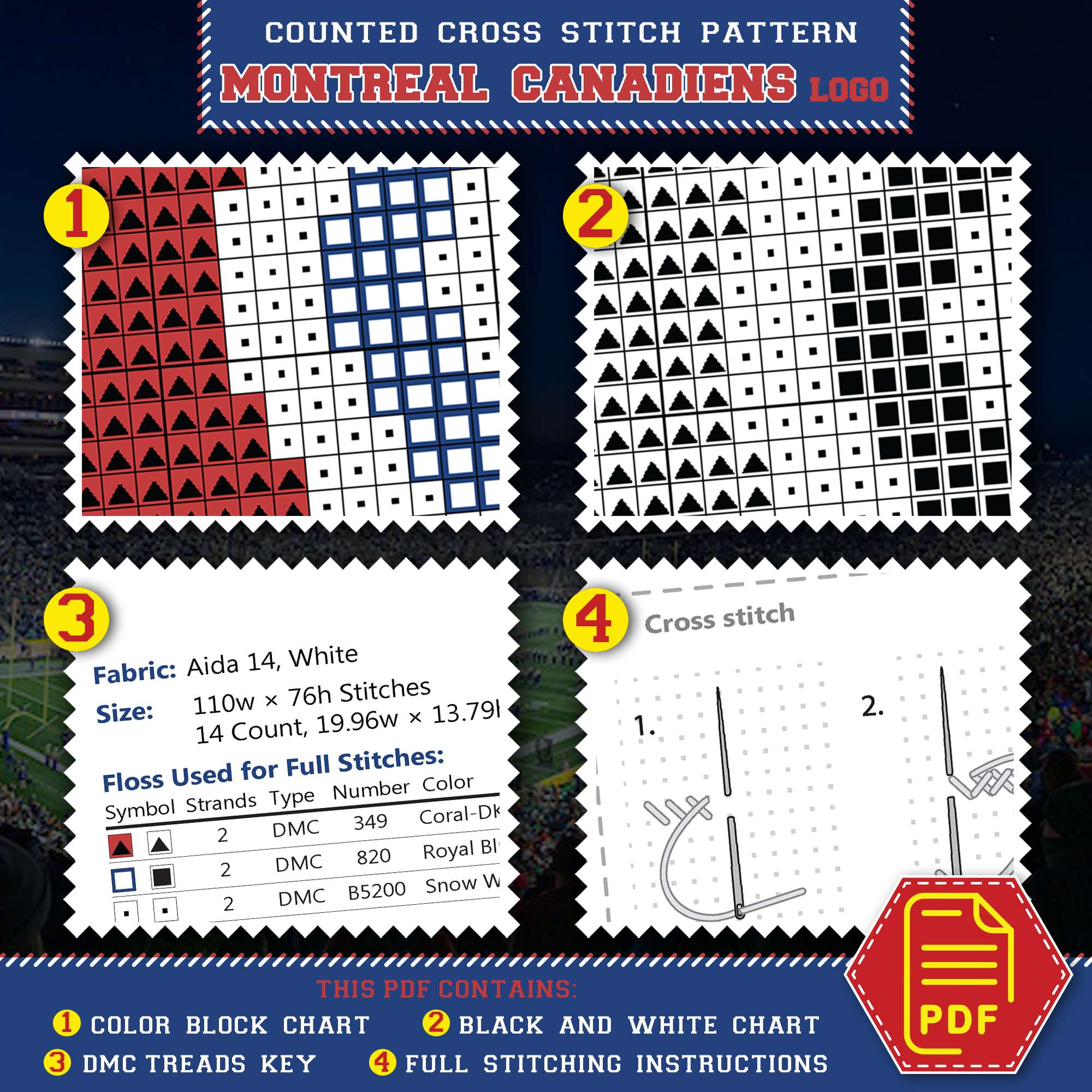 Montreal Canadiens insignia cross stitch pattern, available for instant download as a 5-page PDF file.