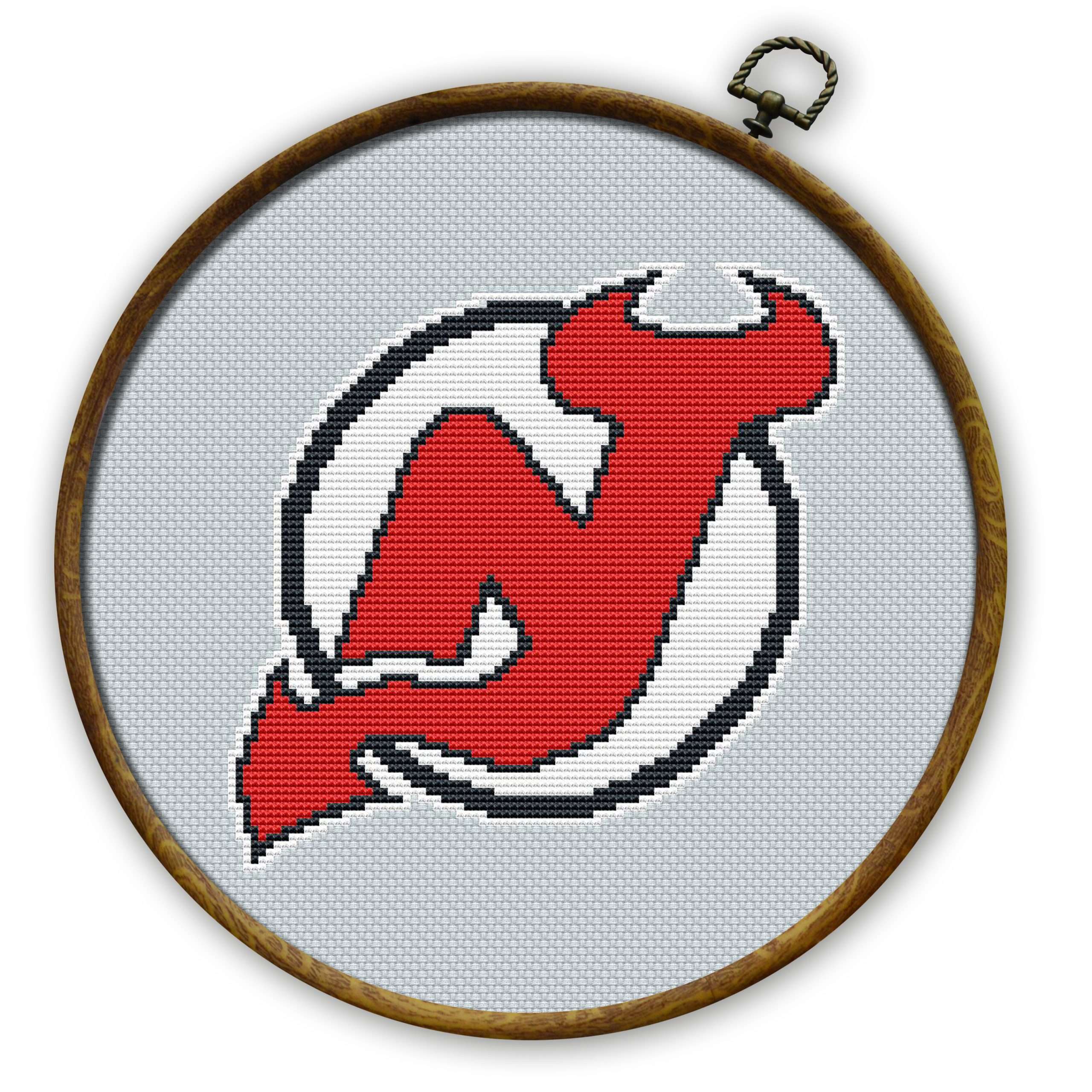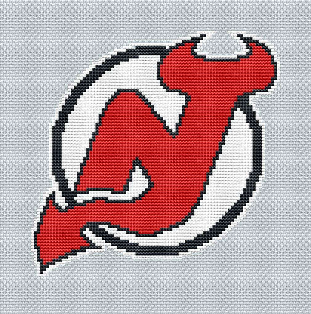 New Jersey Devils insignia cross stitch pattern, available for instant download as a 5-page PDF file.