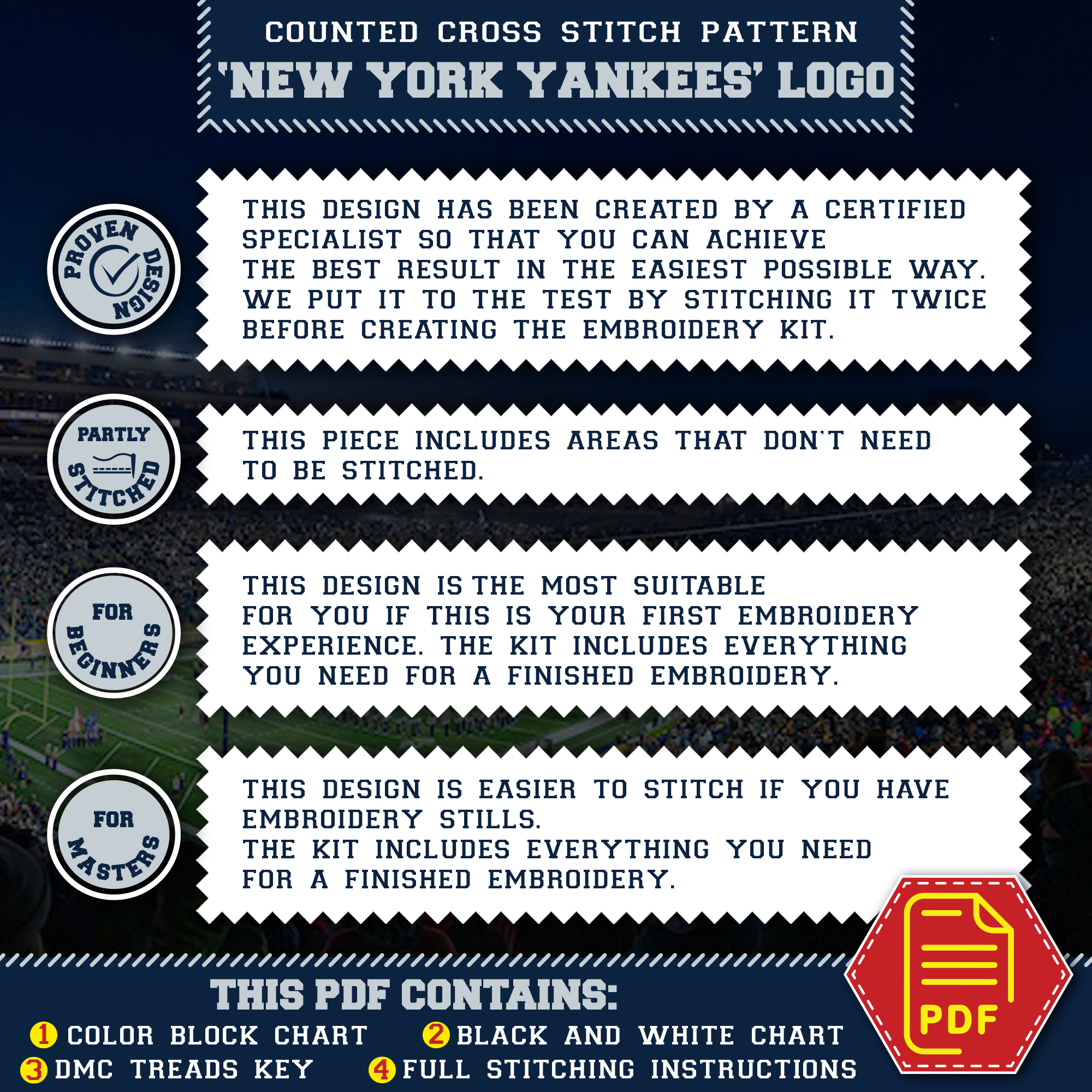 New York Yankees Logo Counted Cross Stitch Pattern – Download in PDF