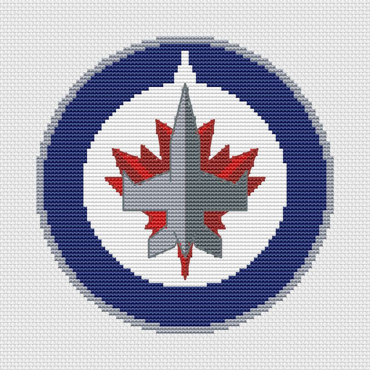 Winnipeg Jets insignia cross stitch pattern, available for instant download as a 5-page PDF file.
